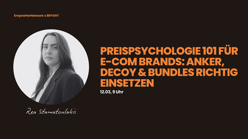 Rea Stamatoulakis ist Gründerin und Pricing-Strategin für E-Com Brands und zeigt dir in dieser Session, wie du psychologische Pricing-Mechanismen gezielt einsetzt, damit deine Produkte wertvoller wirken, nicht günstiger.